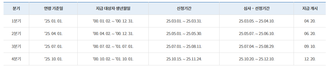 - 연령 요건: 지급 기준년도 1월 1일 기준 만 24세