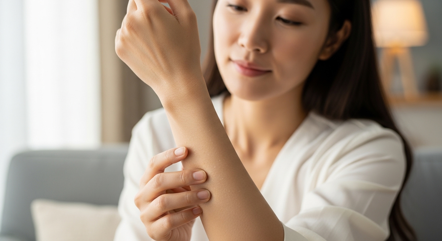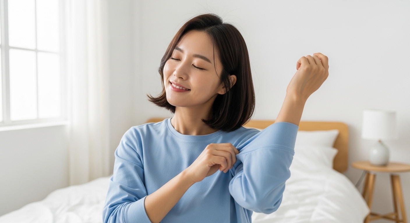 가볍게 롤링해주면 끈적임 없이 빠르게 흡수되는 것을 확인할 수 있습니다. 흡수 후에는 피부가 매끈하고 보송보송해지는 느낌! 겉은 보송하지만 속은 촉촉한, 정말 이상적인 사용감이라고 생각합니다. 아침에 바빠서 후다닥 옷을 입어야 할 때도, 끈적임 걱정 없이 사용할 수 있어서 너무 만족스러워요.