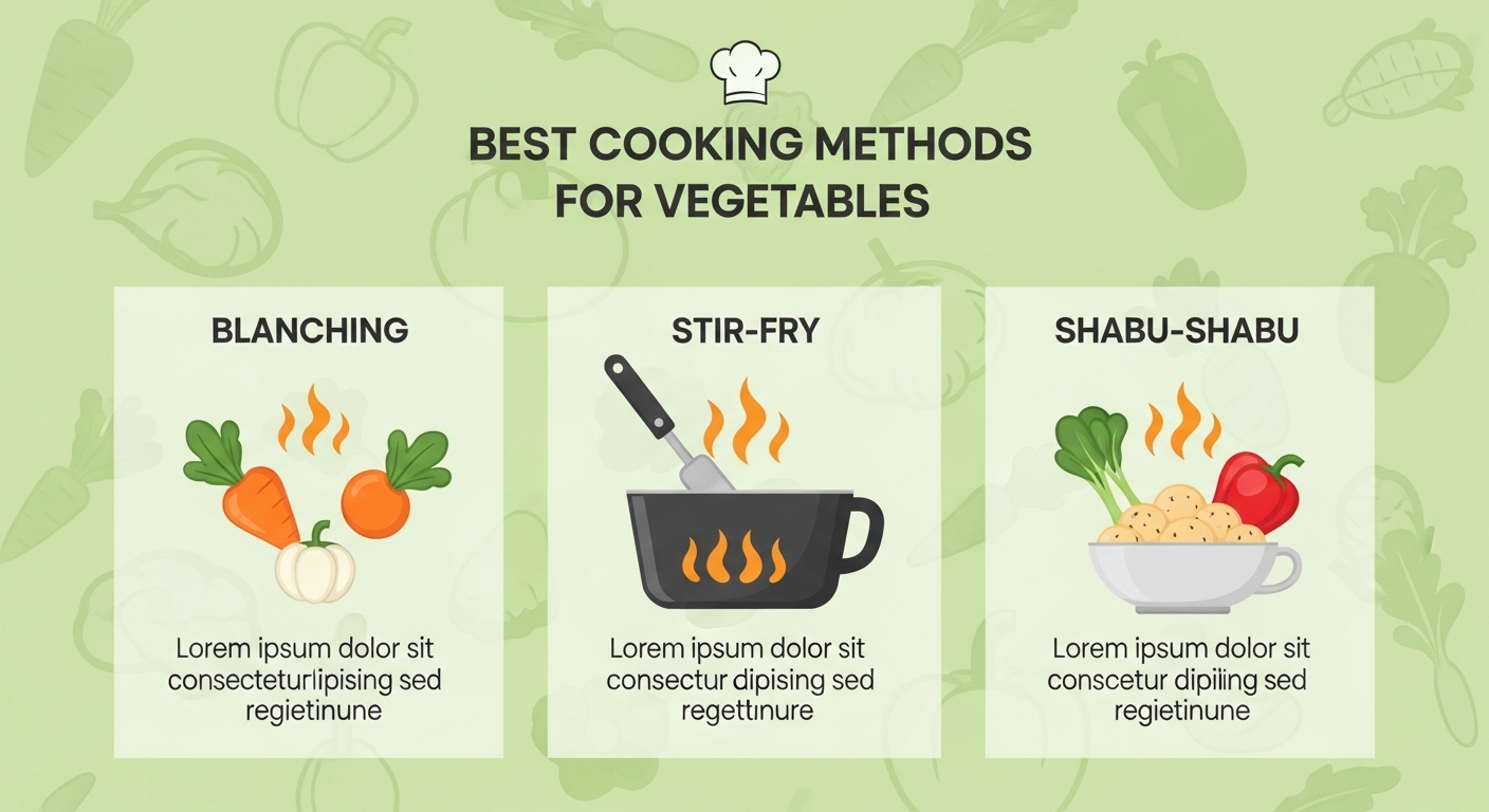 | 볶음 요리 | 기름을 너무 많이 쓰지 않고, 약불에 아삭함 살려 조리 |