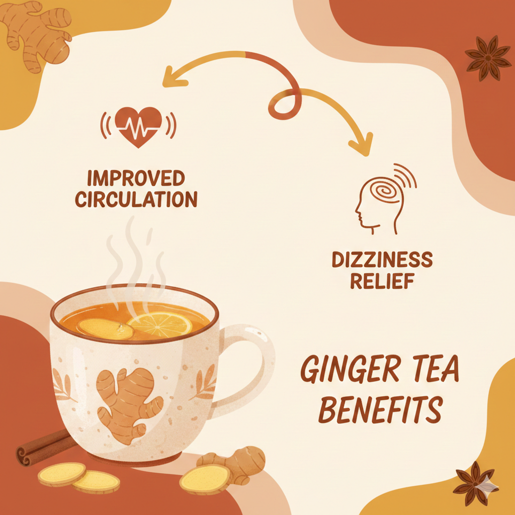 따뜻한 생강차 한 잔은 속을 편하게 해주고 어지럼증이 심할 때도 도움이 될 수 있어요. 다만, 공복에 너무 진하게 마시는 건 피해주세요.