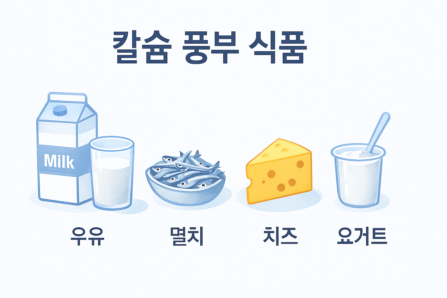 우유, 멸치, 치즈, 요구르트 등은 칼슘이 풍부하게 들어있는 대표적인 식품이죠. 특히 멸치는 뼈째 먹을 수 있어 흡수율이 좋아요. 하루에 한 줌 정도만 꾸준히 섭취해도 도움이 될 수 있습니다.