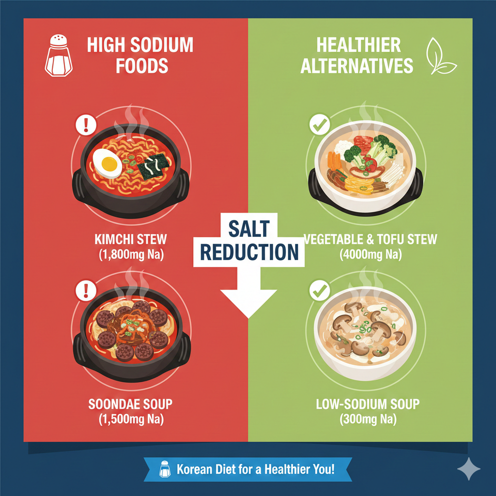 | 음식 종류 | 나트륨 함량 (1인분 기준) | 대체 식단 아이디어 |