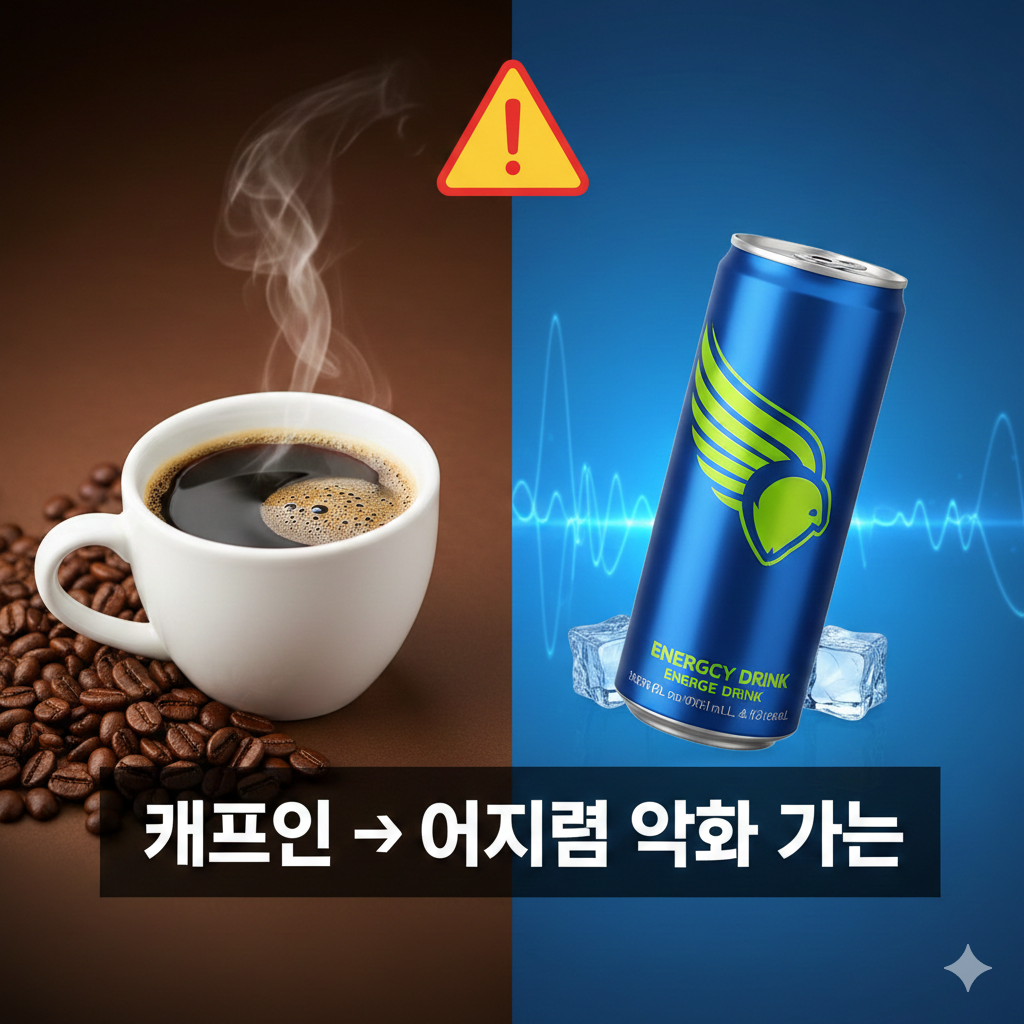 커피나 에너지 음료 같은 카페인 함유 음료는 귀 속 혈류에 영향을 줄 수 있기 때문에 이석증이 있을 때는 섭취를 줄이는 것이 좋습니다.