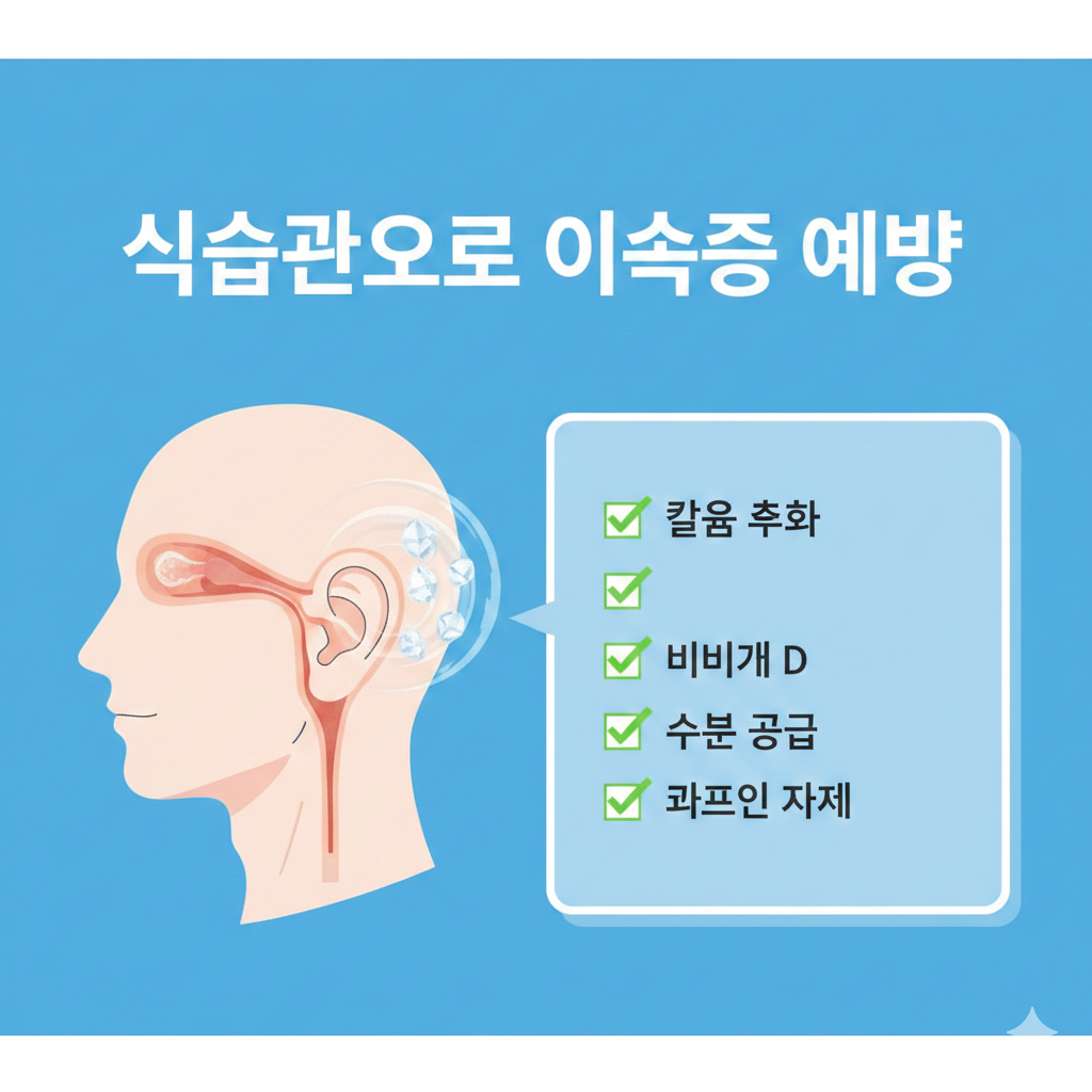 이석증은 재발이 흔한 질환이기 때문에 한 번 증상이 사라졌다고 방심하면 안 돼요. 평소에 칼슘과 비타민 D를 잘 챙기고, 염분과 카페인은 줄이며, 충분한 수분을 섭취하는 식습관이 중요합니다.