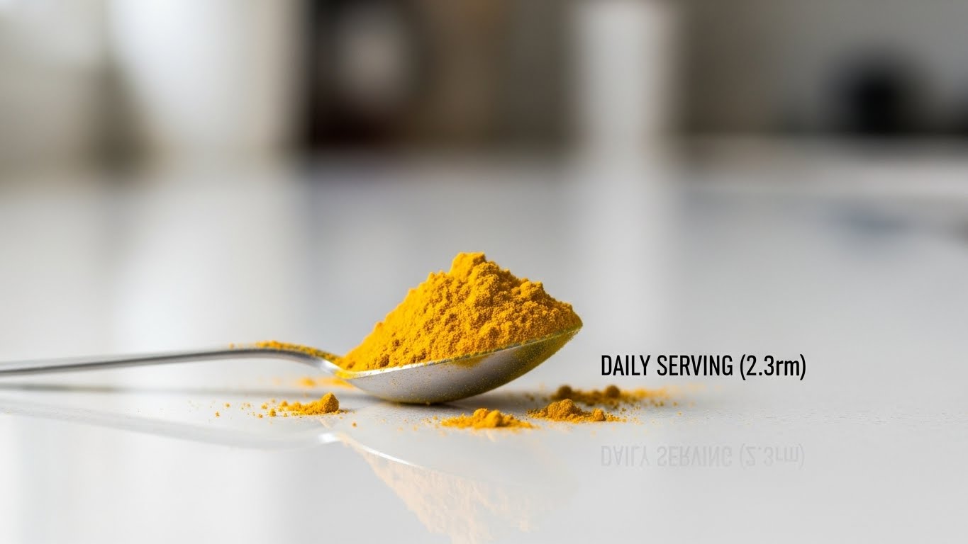 강황 가루로 환산하면 약 2~3g 정도(작은 티스푼 1~1.5스푼) 정도가 적당하다고 볼 수 있습니다.