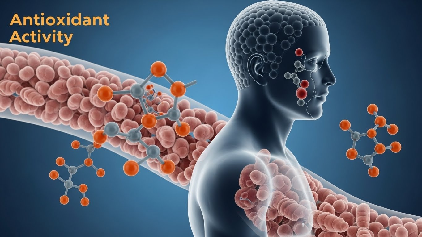 강황의 핵심 성분은 커큐민(curcumin)으로, 항산화 활성이 높은 폴리페놀의 일종입니다.