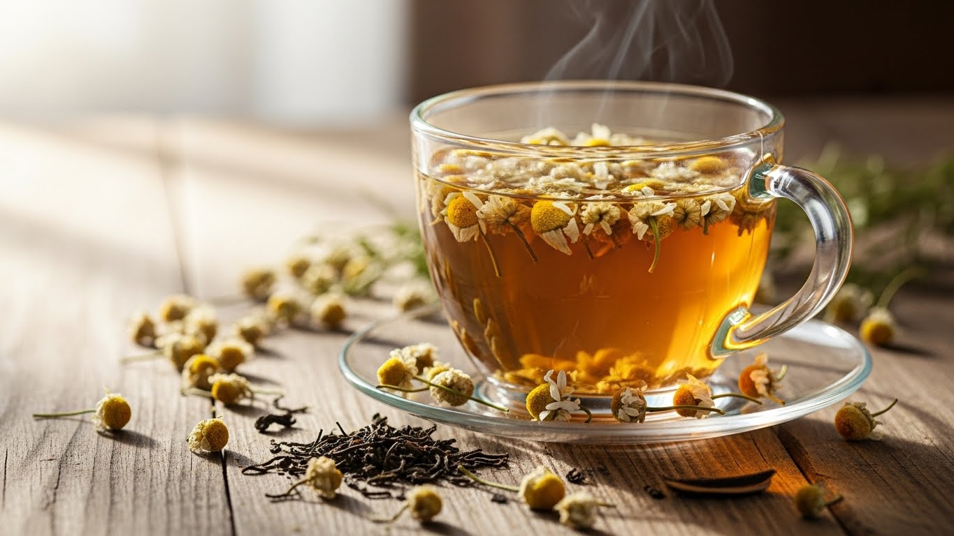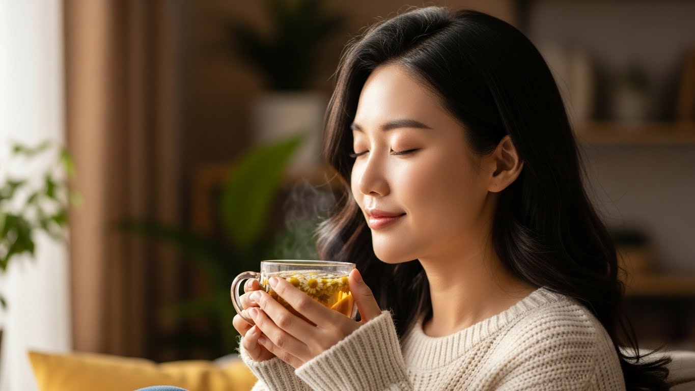 스트레스로 지친 하루, 따뜻한 캐모마일차 한 잔이 주는 안정감은 참 특별하죠.