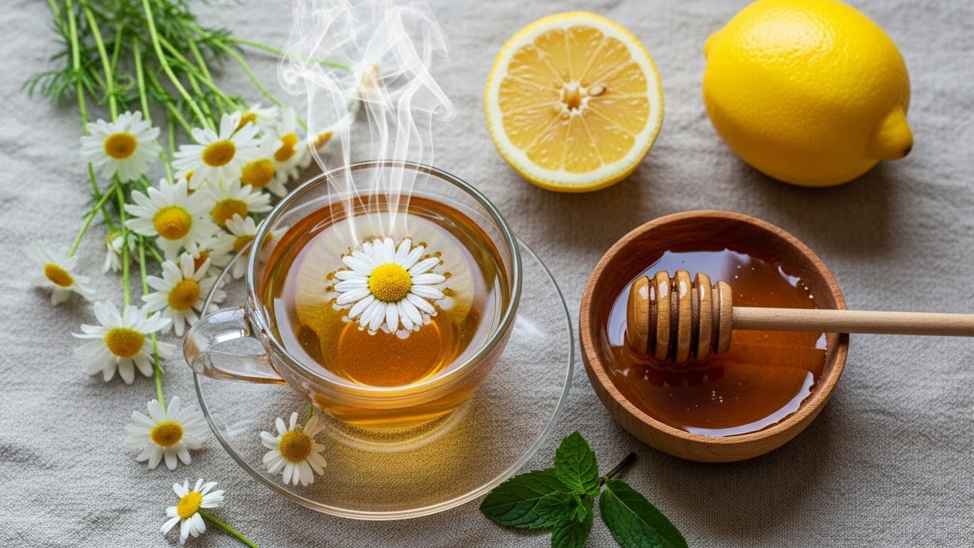 캐모마일차는 꿀 한 스푼, 레몬 슬라이스와 함께 마시면 풍미도 살고 효과도 부드럽게 느껴집니다.