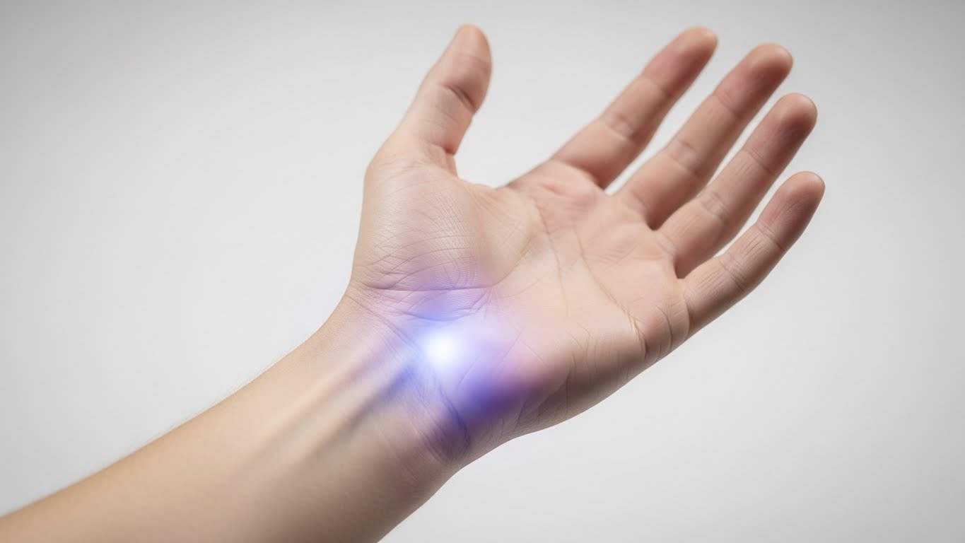 손목 안쪽의 신경(정중신경)이 압박을 받아 생기는 질환으로, 스마트폰 과사용, 반복적인 손 사용 등이 원인일 수 있어요.
