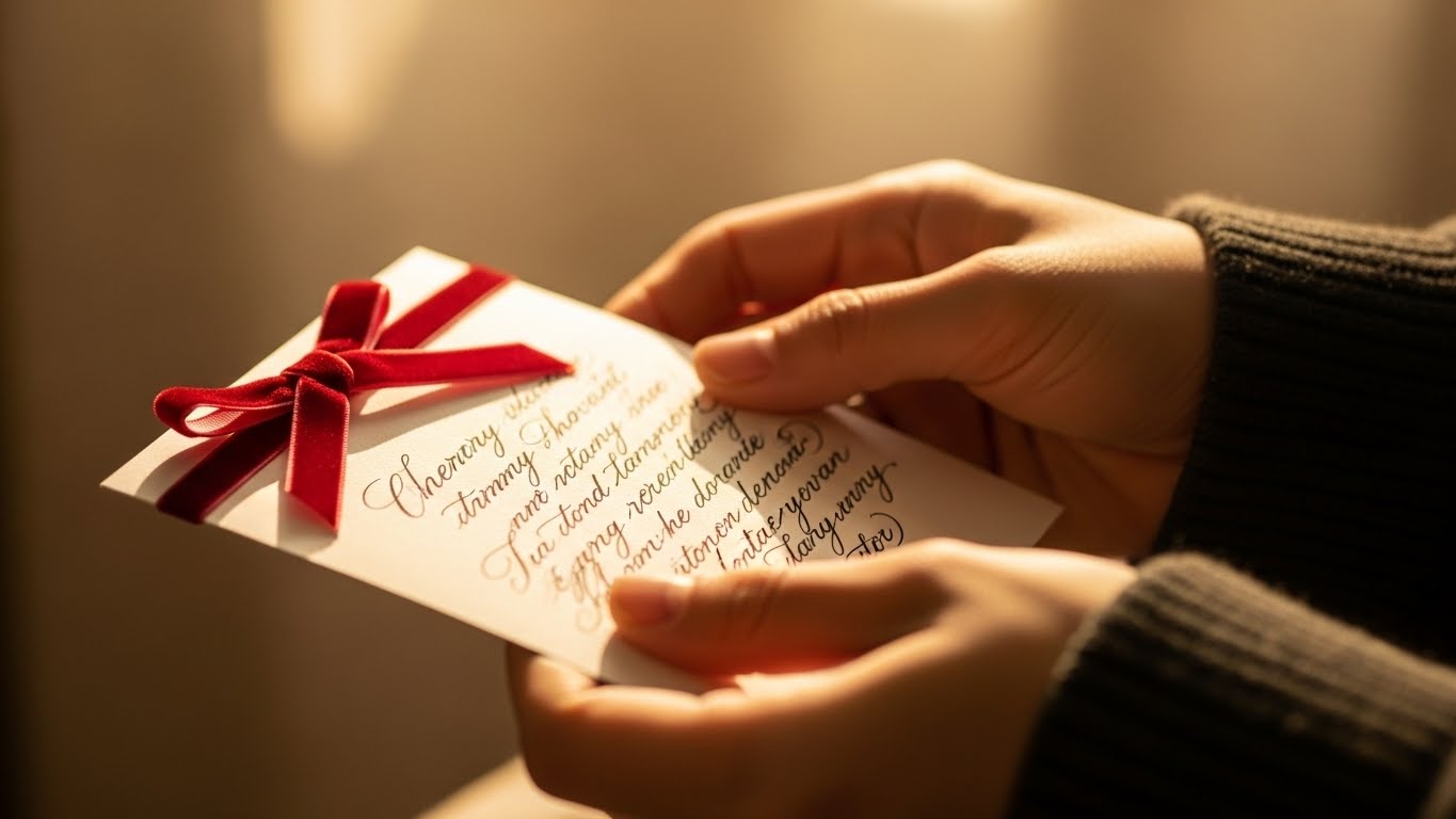 "메리 크리스마스, 내 곁에 있어줘서 고마워요. 당신은 내 인생 최고의 선물이에요. 사랑해요."