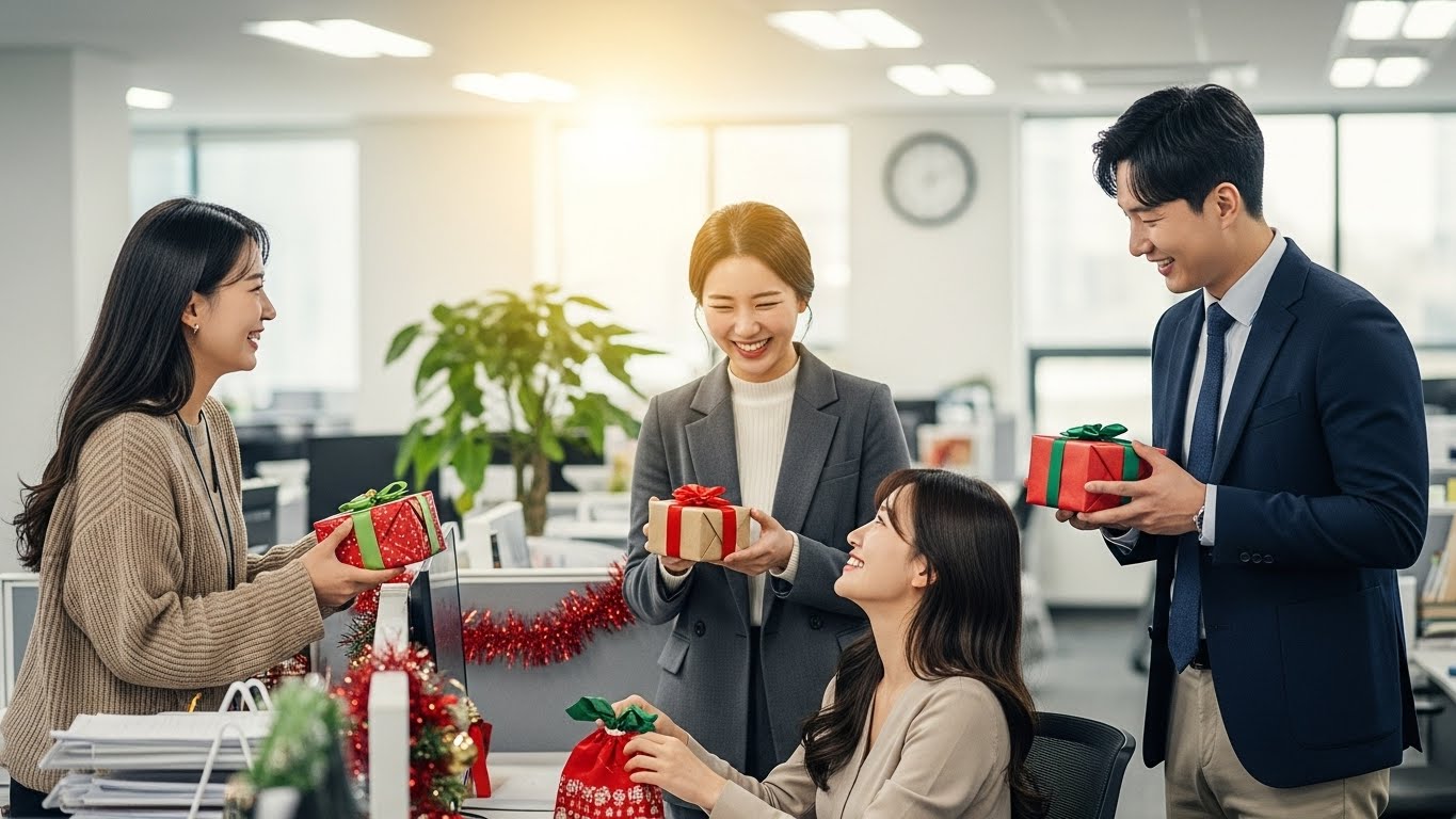 "동료 여러분, 메리 크리스마스! 함께 일하며 만든 성과들이 자랑스럽습니다. 모두 따뜻하고 행복한 연말연시 보내세요."