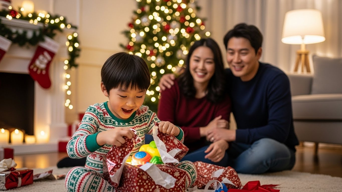 "사랑하는 우리 가족, 메리 크리스마스! 항상 곁에 있어주셔서 감사합니다. 새해에도 건강하고 행복한 일만 가득하시길 바랍니다."