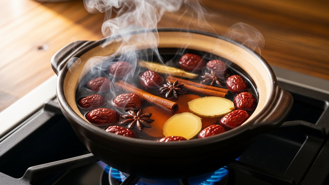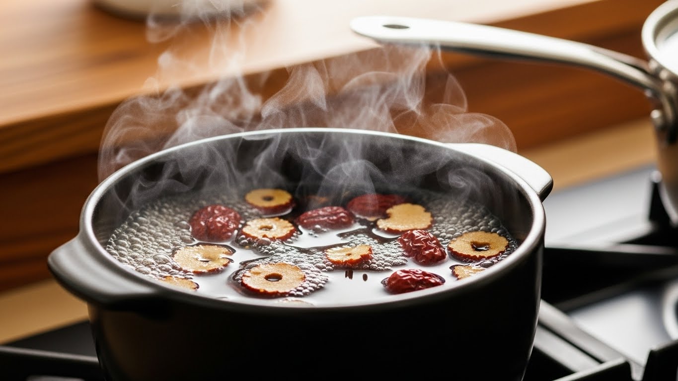 - 끓이기: 처음에는 센 불로 가열해 끓기 시작하면 중약불로 줄입니다. 약한 불에서 20~30분 정도 은근히 끓여 대추의 단맛과 향이 물에 우러나게 합니다. 더 진한 맛을 원하면 40~50분까지 우려도 좋습니다.