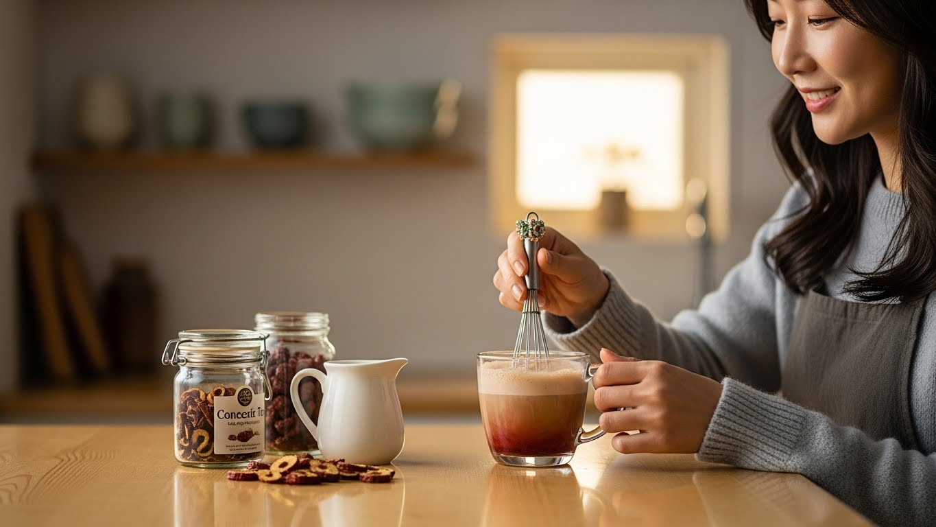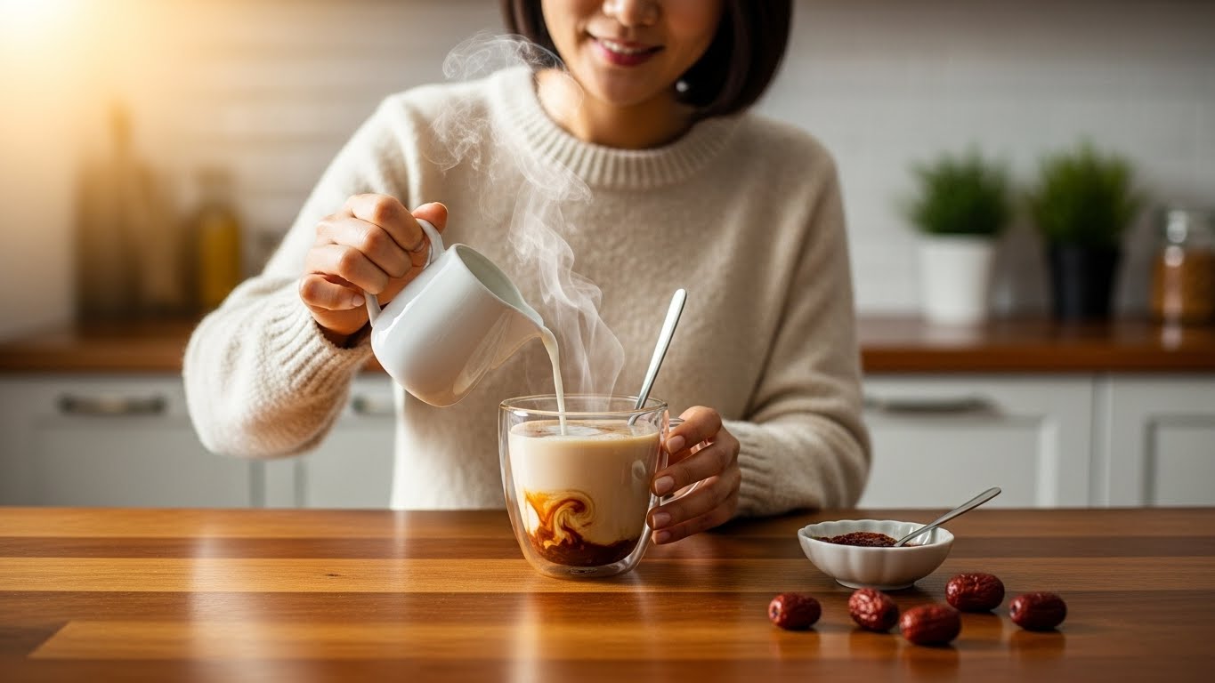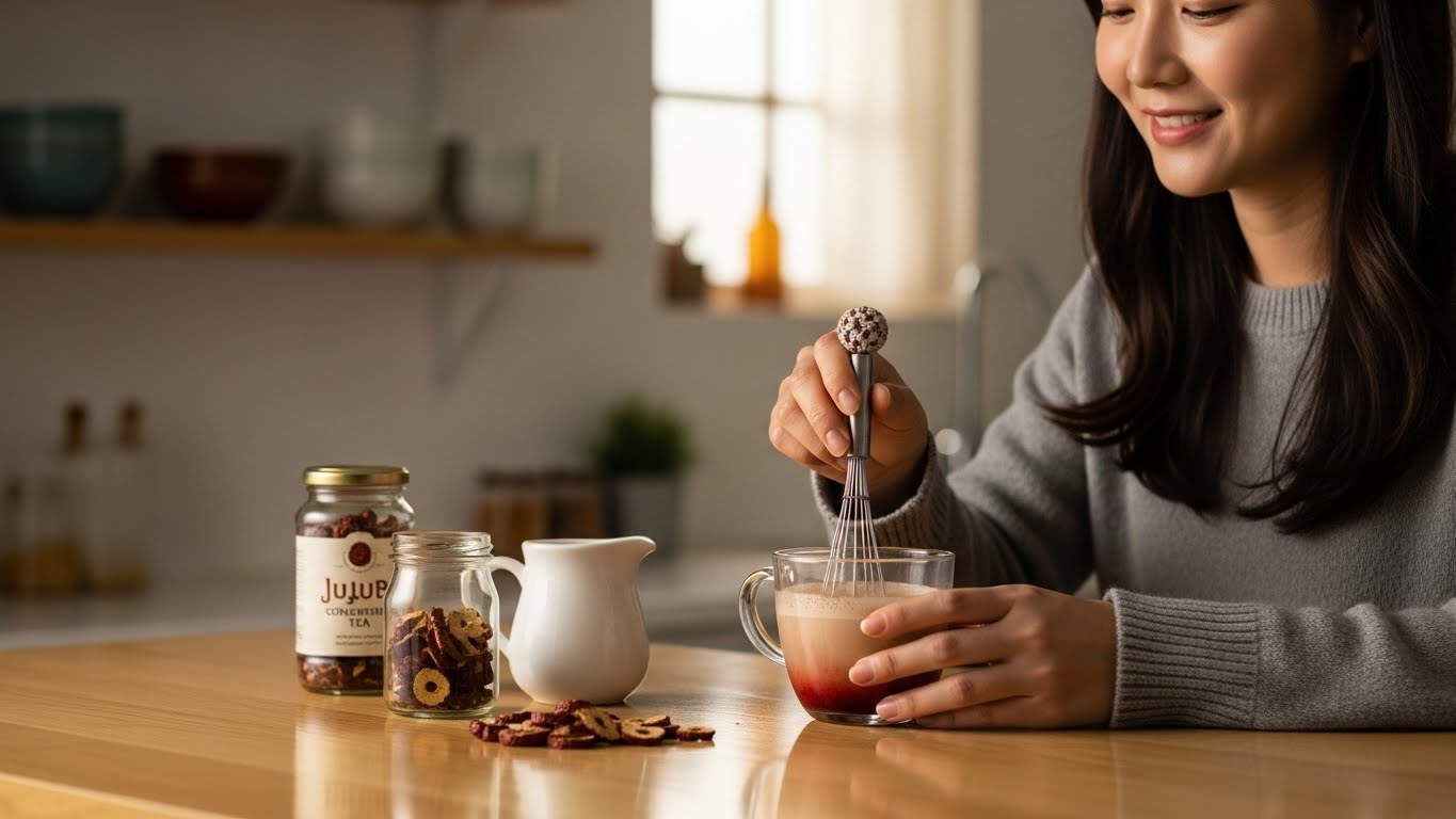 - 대추 라떼: 진하게 우려낸 대추차에 따뜻한 우유(또는 아몬드 우유)를 1:1 비율로 섞어 부드러운 라떼로 즐기세요. 거품기를 사용하면 더 좋습니다.
