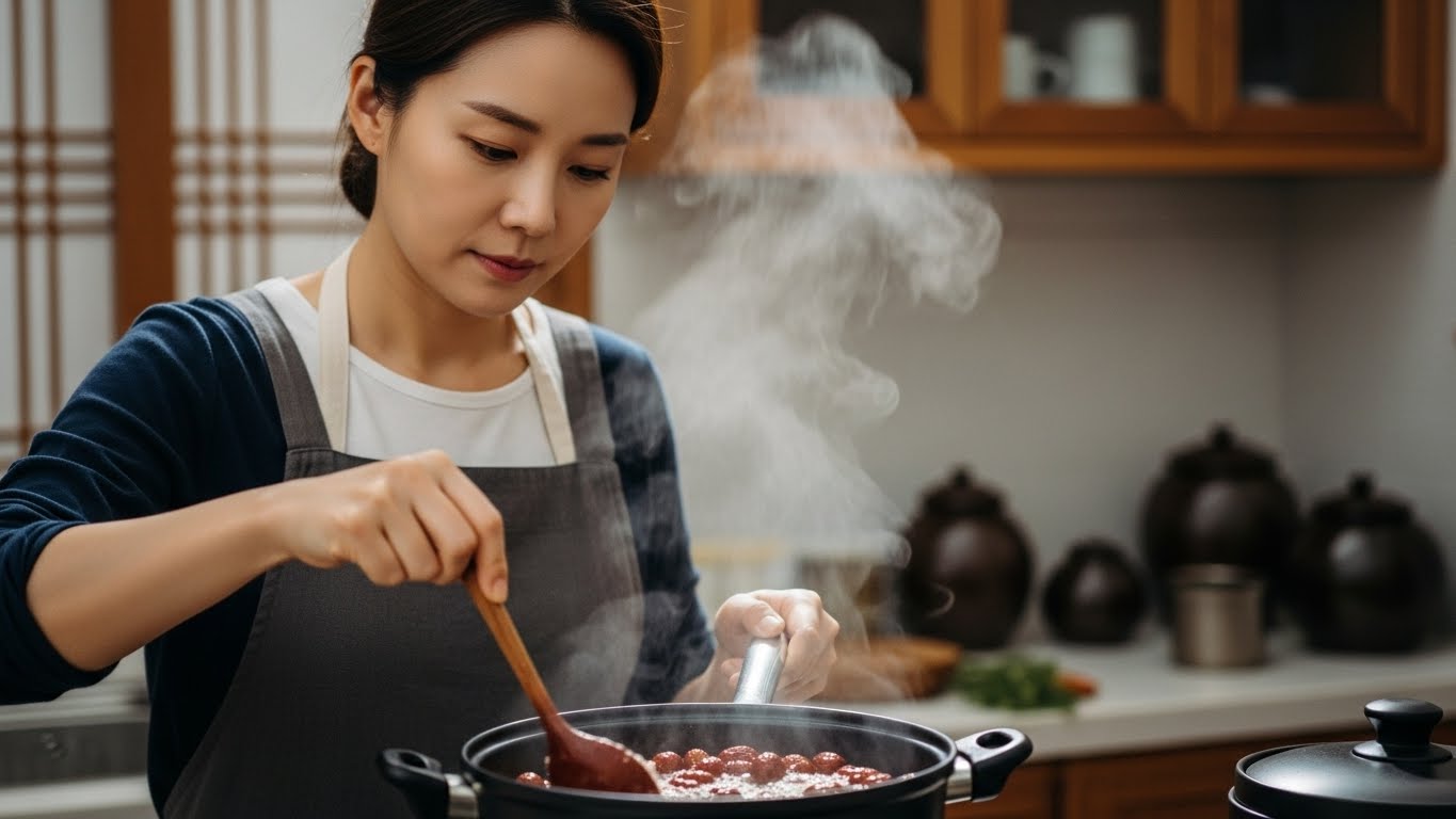 - 덜 달게: 대추 양을 줄이거나 끓이는 시간을 단축하세요. 레몬 몇 방울을 넣으면 단맛을 상쇄해 깔끔한 맛을 냅니다.