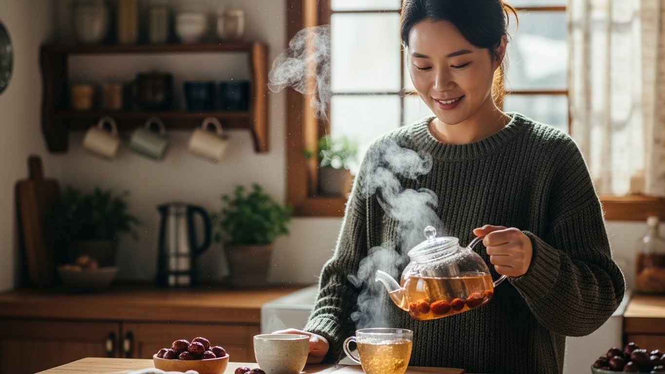 안녕하세요. 오늘은 추운 날이면 문득 떠오르는 그 향, 따뜻한 대추차 한 잔을 함께 나누려 합니다. 특별한 재료나 복잡한 손길이 필요하지 않지만, 천천히 우려낸 대추의 은은한 단맛과 향은 바쁜 일상 속 작은 위로가 되어줍니다.