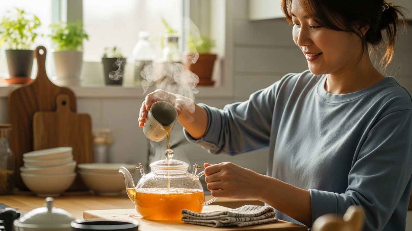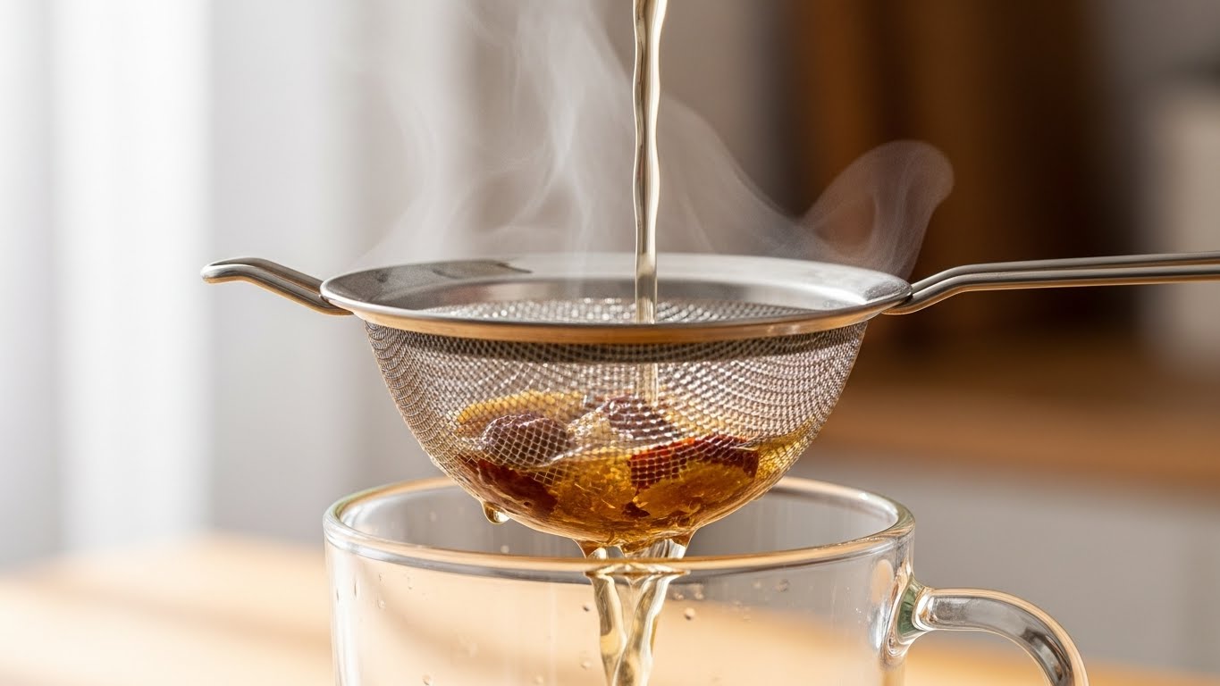 - 단맛 조절: 꿀은 차가 약간 식었을 때 넣어 향과 영양을 보존하세요. 설탕을 쓰려면 끓이는 동안 조금 넣어도 됩니다.