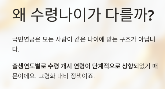 - 출생연도에 따라 수령나이는 다름