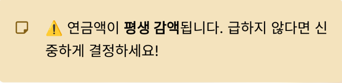 👉 생활이 급하지 않다면 조기수령은 신중하게 결정하는 것이 좋습니다.